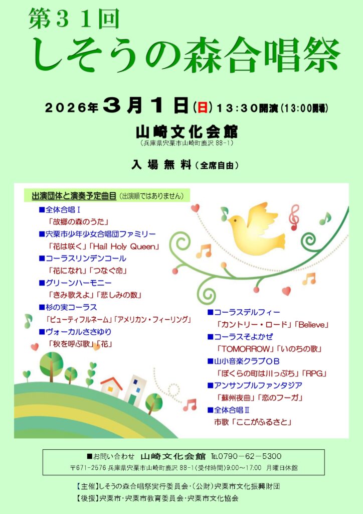 【主催】しそうの森合唱祭実行委員会・(公財)宍粟市文化振興財団