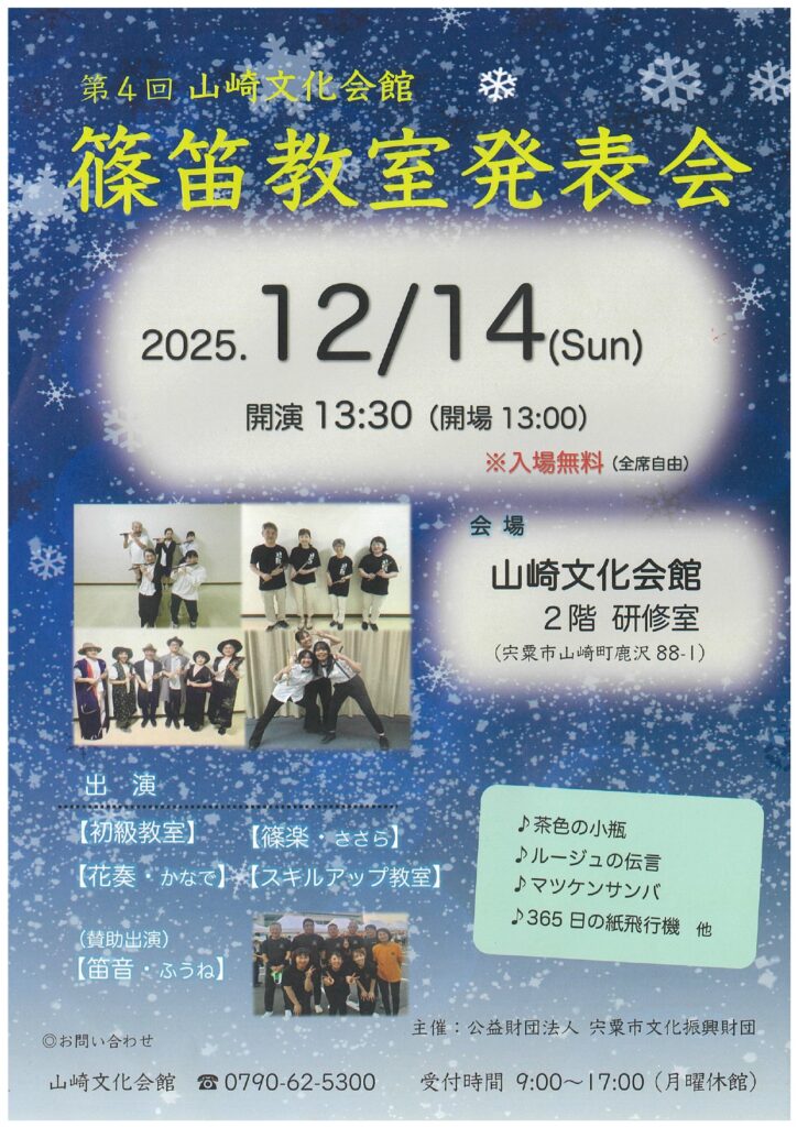 宍粟市山崎文化会館の催し、利用のご案内をしています。